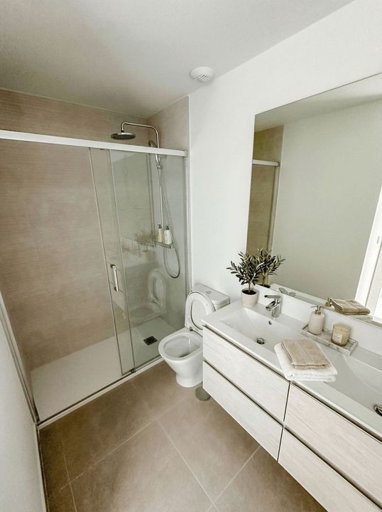 Buitenleven: Geniet van de mediterrane zon op het grote privéterras van 26,7 m². Deze ruimte dient als een perfecte uitbreiding van de woonkamer en is ideaal om buiten te eten of te luieren.