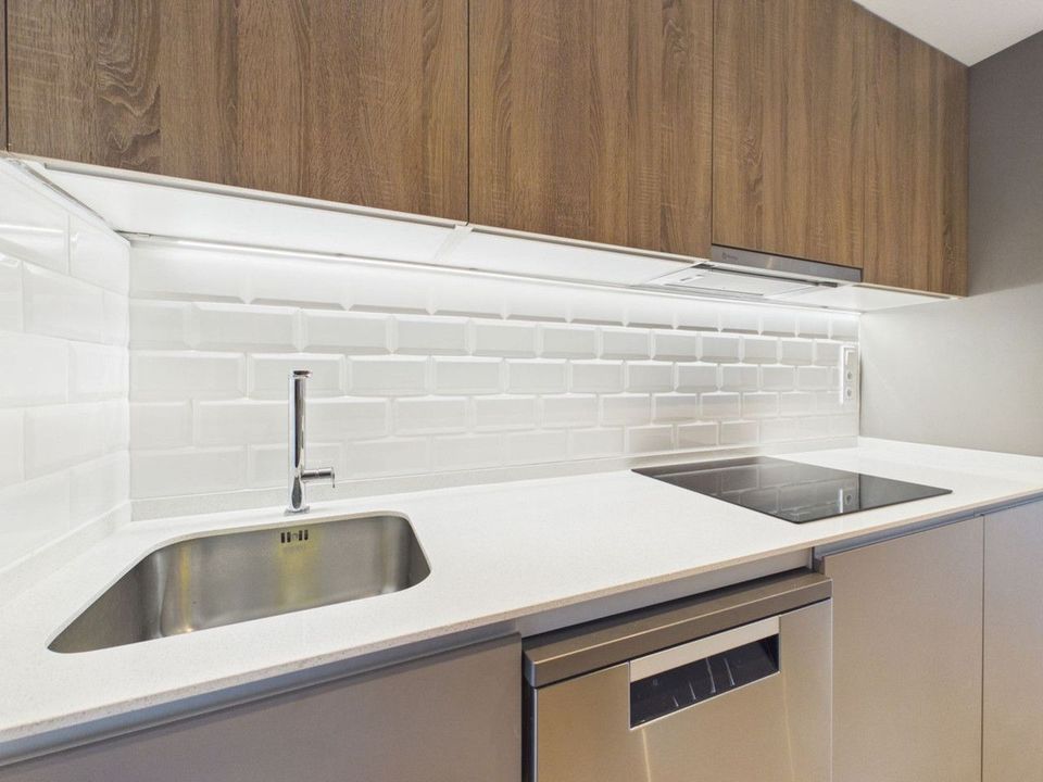Open-plan kitchen and living area with abundant natural light