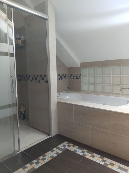 * Renovated bathroom with whirlpool bathtub, separate shower, and natural light