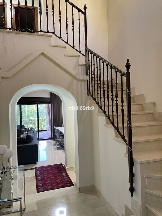 Upon entering, you are greeted by a stunning galleried staircase that immediately enhances the sense of space. The ground floor features a modern kitchen, guest WC, a generous lounge/dining area, and a large terrace enclosed with glass curtains—perfect for all-year-round enjoyment. Upstairs, the property comprises three double bedrooms. Two bedrooms are served by a shared shower room with twin sinks and a WC located on the landing. The master suite boasts an open-plan en-suite bathroom with twin sinks, a WC, and a spa bath with shower attachment. Both the master bedroom and one guest bedroom offer direct access to a terrace with breathtaking panoramic views of Azata Golf, the Sierra Bermeja mountains, and the Mediterranean Sea.