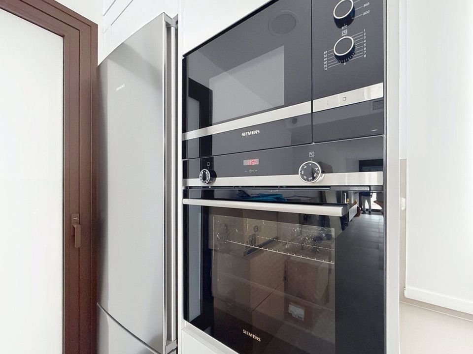Fully fitted kitchen with Siemens appliances: ceramic hob, oven, extractor hood, dishwasher, fridge and washing machine