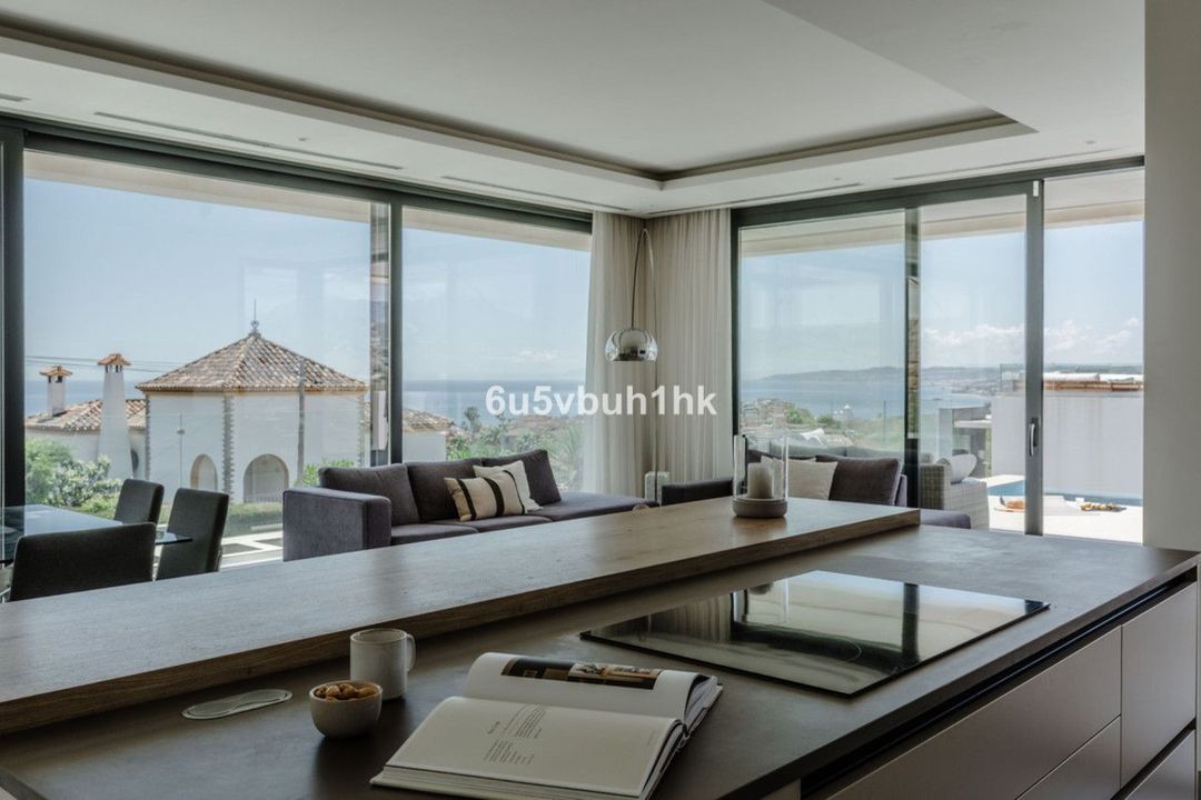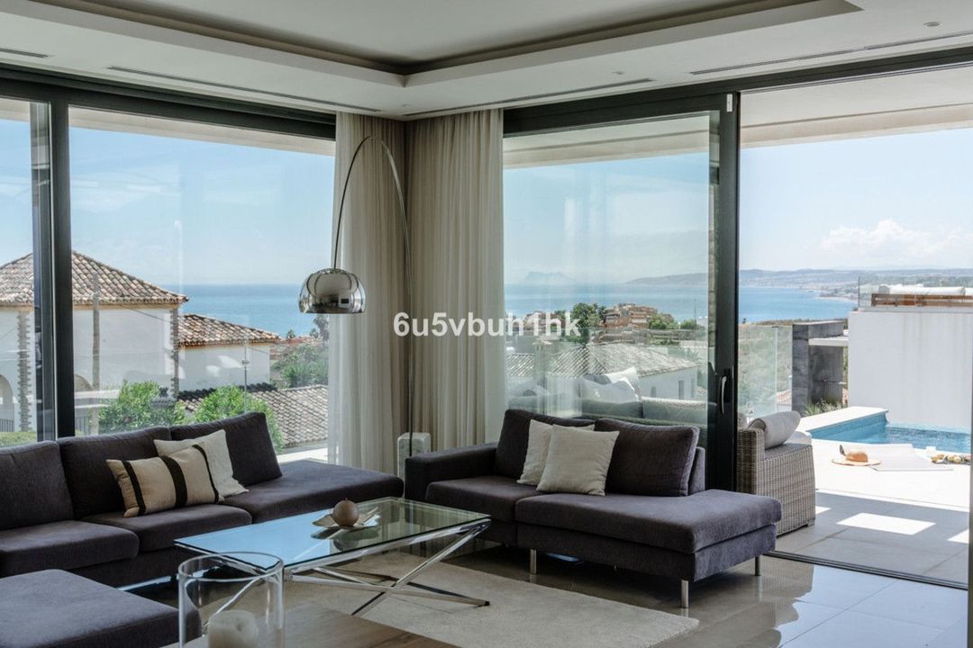Enjoy panoramic views of the Mediterranean Sea, the African coastline, and Gibraltar from every corner of this spectacular villa. With five bedrooms and four full bathrooms, plus a guest toilet, the home offers generous and elegant living space. Two of the bedrooms are en-suite and include private dressing rooms, creating an oasis of comfort and privacy. All rooms open onto the terrace, filling the interiors with natural light and offering breathtaking views of the garden, sea, and mountains. The bedrooms are equipped with electric blinds and bathrooms with underfloor heating.