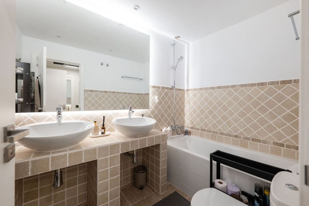 The apartment is located on the ground floor and features a generous total area of 173 m² including 2 large terraces and a private garden. The interior has been recently renovated to premium standards with great attention to detail, including high-end materials, quality finishes, and a tasteful interior design. The open-plan kitchen is seamlessly integrated into the bright and airy living room, creating a warm and welcoming space for both everyday life and entertaining.