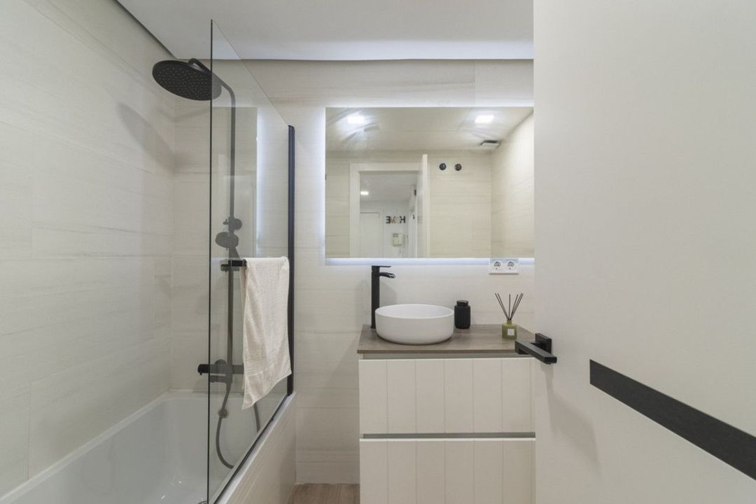 This ground-floor apartment, although it has an upper level and a large terrace. Upon entering the apartment, we find a spacious living-dining room and a separate, fully renovated and equipped kitchen. The apartment also has two large bedrooms and two renovated bathrooms (one of them en suite).