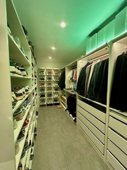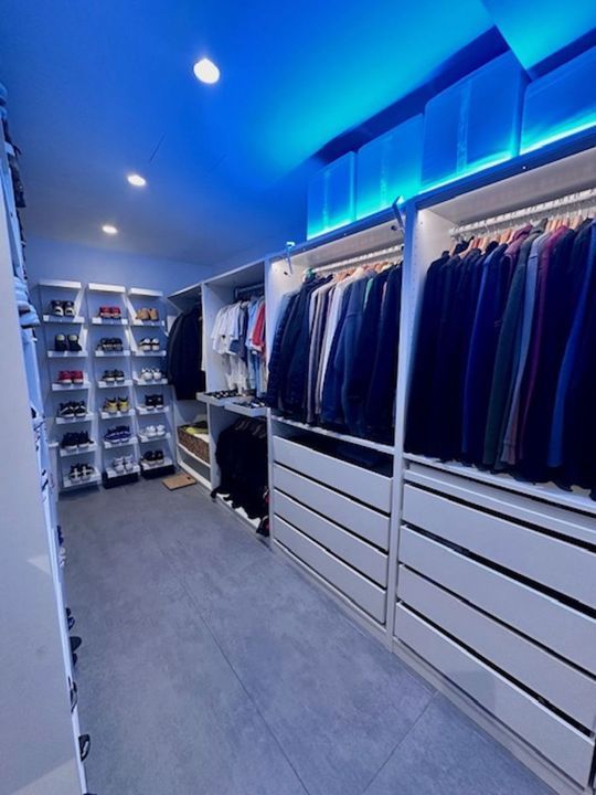 A huge, well-divided dressing room, with lighting, is custom-built.