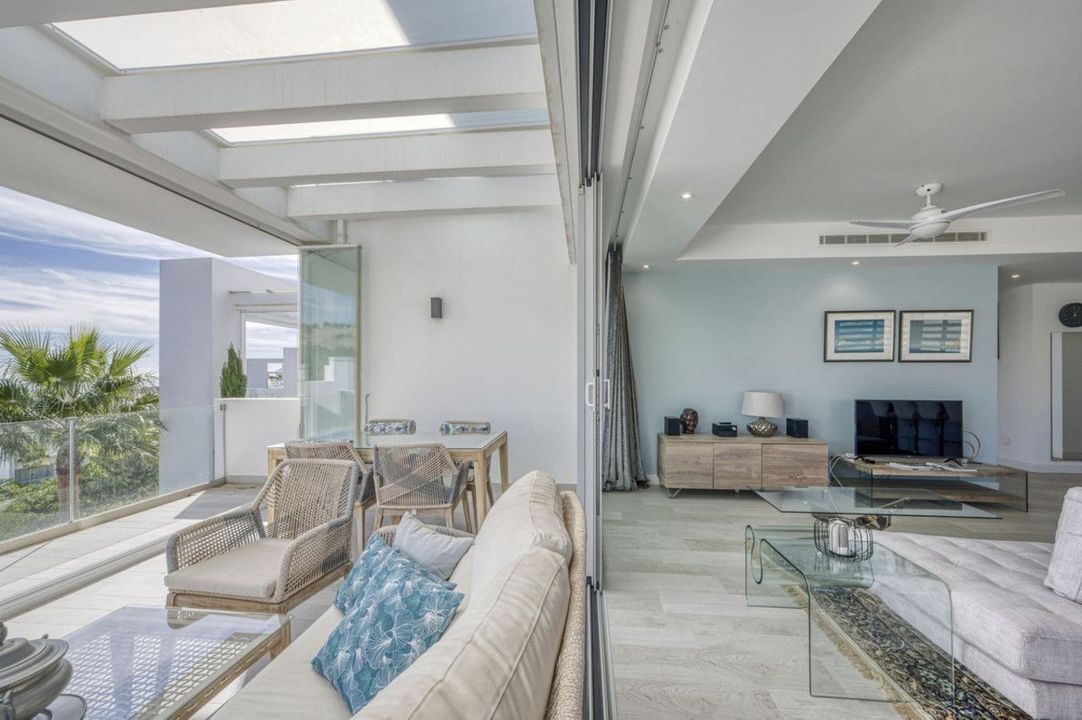 Love at first sight! Large 3 bedroom corner unit in a paradise environment, yet 5mn to all amenities/golf/sea, and 10mn to the town of Estepona. Situated in the most elevated and private bloc, phase 3 of Alcazaba Lagoon, your senses awaken as you enter, thanks to the wonderful light and layout. The urbanisation is state-of-the-art, with all the amenities you can think of: a private laguna where owners can do all kind of water sports, or relax in one of the white sand beaches; a mediterranean restaurant and a beach bar; a gym and mini market; jacuzzi and sauna; and of course swimming pools, a massive garden, and hiking trails. The size of the living room is really spectacular, and the extensive fully-equipped open kitchen blends in perfectly. The 44m2 wrap around terrace has open views towards the sea and garden on one side, and to the Estepona mountains and a protected agricultural land on the other. The owner has installed glass curtains to create a chill-out area, which can be opened or closed. The sleeping area consists of 3 wide bedrooms (one has been converted to an office), and 2 full size bathrooms. The owner has just finished a substantial renovation and refurbishment, including a brand new kitchen, ventilators, terrace, furniture, custom-made curtains ... Ready to move into. The price comes with two underground private parking spots, and a huge fitted storage room. A must see!!