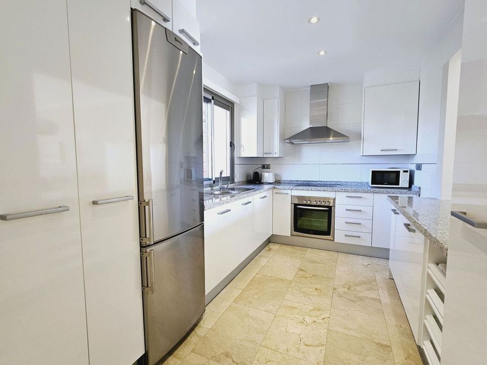Dit ruime en lichte penthouse met 2 slaapkamers bevindt zich in Selwo, Estepona. Gelegen in een elegante gated community met 2 zwembaden en prachtige tropische tuinen, biedt dit appartement uitstekende kwaliteiten, rust, uitzicht op zee, comfort en stijl. Het pand valt echt op door zijn geweldige onoverdekte terras met prachtig panoramisch uitzicht over de Middellandse Zeekust, bergen en golf. Bij binnenkomst in het appartement wordt u begroet met een moderne, volledig ingerichte, halfopen keuken, grote en lichte woonkamer die direct uitkomt op het ruime terras met eethoek en chillout-sofagedeelte met veel extra leefruimte buiten, wat zo belangrijk is voor de manier van leven in Marbella, dankzij ons heerlijke klimaat. De hoofdslaapkamer heeft directe toegang tot het terras en de tweede slaapkamer heeft prachtig uitzicht op de bergen over het beschermde gebied achter de ontwikkeling. Het appartement heeft veel natuurlijk licht, warme en koude airconditioning overal, automatische zonneschermen op het terras voor broodnodige schaduw in de zomer, prachtige marmeren vloeren en badkamer en horren op alle deuren. Inbegrepen in de prijs is een ondergrondse parkeerplaats en handige berging, met een lift die u rechtstreeks van het appartement naar de parkeerplaats brengt.