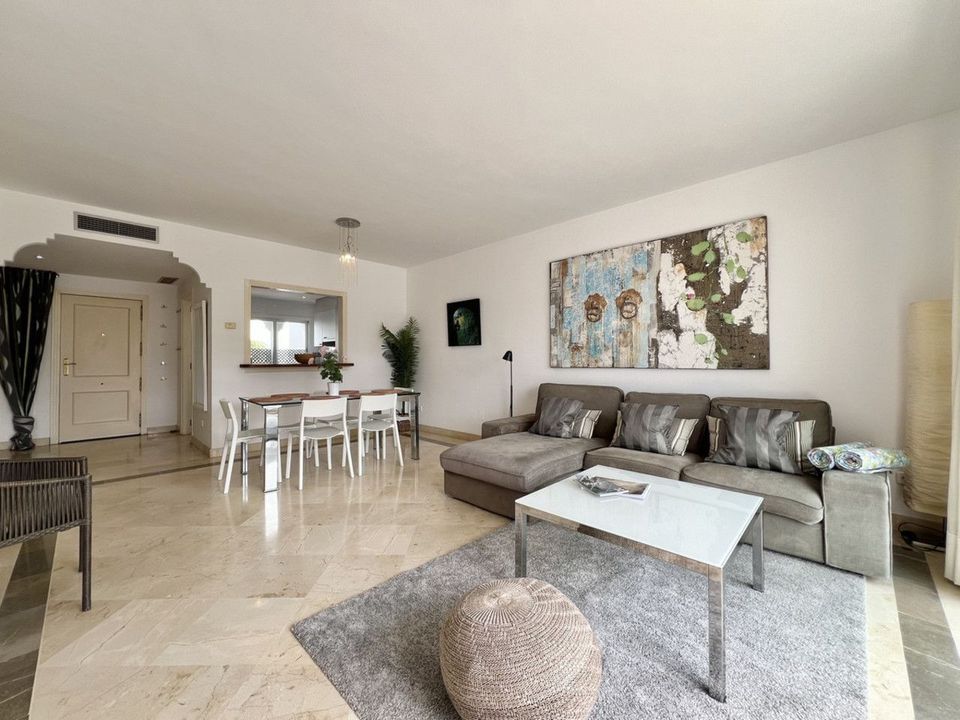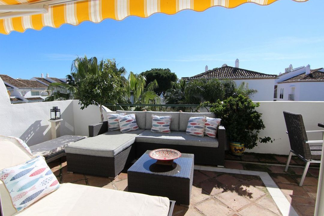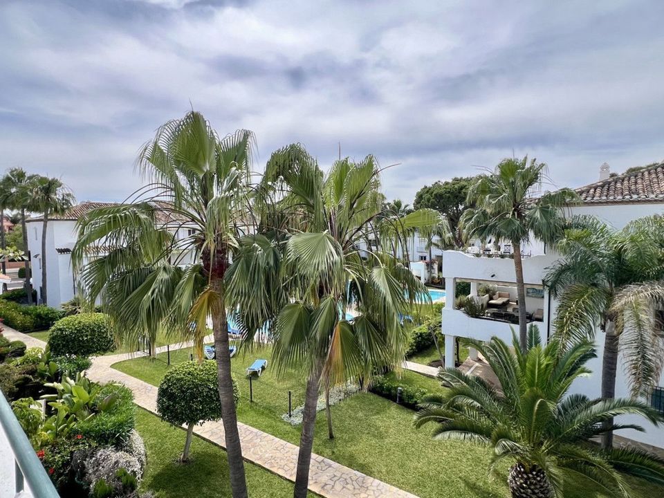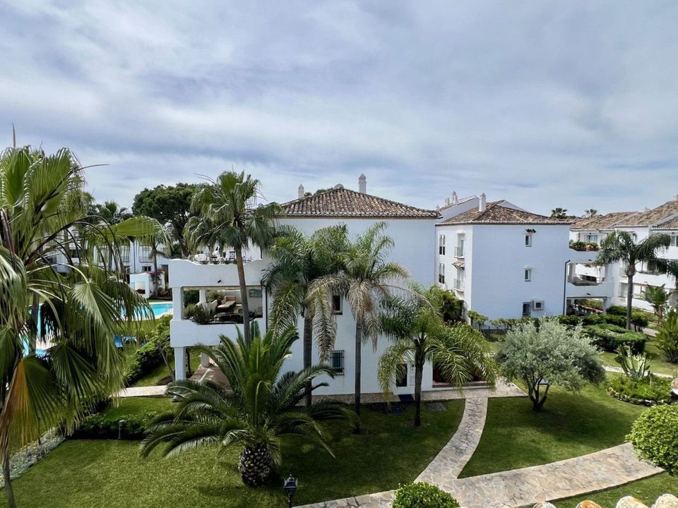 Fantastic top-floor apartment, south-facing, in El Presidente with tourist license. The beautiful entrance, filled with aromatic plants, welcomes us, and as soon as we enter the hall, we appreciate how the entire apartment is bathed in sunlight. The spacious living and dining room, with large sliding glass doors, opens onto the very sunny terrace. The master bedroom also has direct access to the same terrace and features an en-suite bathroom. The second bedroom overlooks a charming pine forest. The second bathroom also serves as a guest toilet. The kitchen is fully equipped. El Presidente offers a large parking area, five swimming pools, one of them heated all year around, wonderful mature communal gardens with fountains, tennis and paddle courts, and 24-hour security. Amenities, supermarkets, and restaurants are within walking distance, as well as the beach, the new Estepona coastal path, and excellent restaurants such as Salduna, just 250 meters from the development. Do not miss the opportunity to visit this great opportunity!