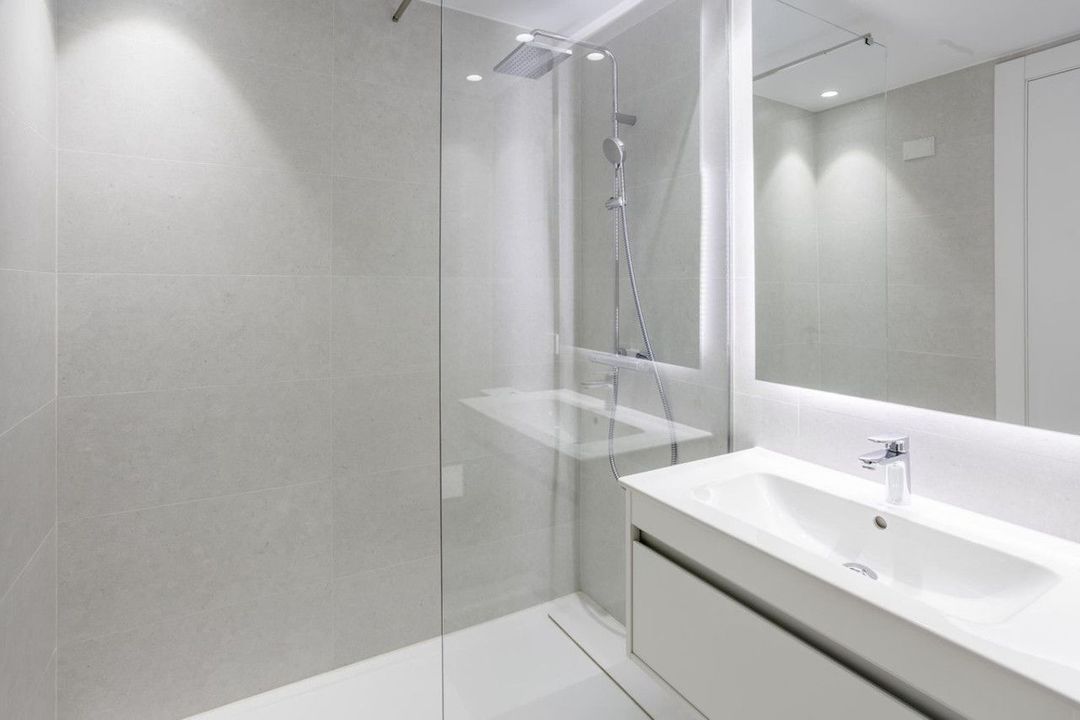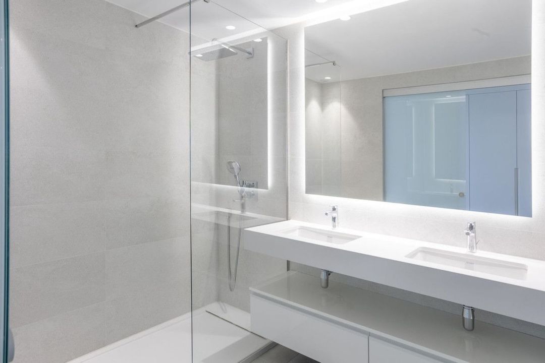 Binnen biedt de woning een stijlvolle open indeling met vloer-tot-plafondramen en hoogwaardige materialen en afwerkingen doorheen het volledige appartement, inclusief de keuken, badkamers en leefruimtes. Beide slaapkamers zijn ruim opgezet, waarbij de master suite beschikt over een en-suite badkamer en directe toegang tot het terras.