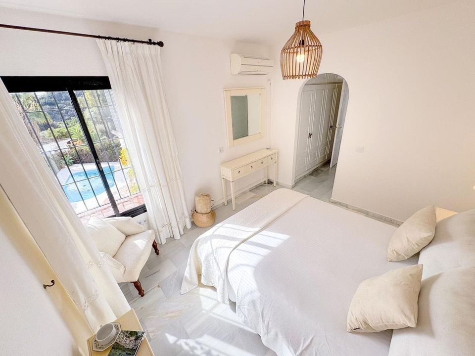 This beautifully reformed rustic-style villa combines charming character with modern comfort. The main house offers three spacious bedrooms and two updated bathrooms, along with a brand-new, fully fitted kitchen designed for both style and practicality. A cozy fireplace adds warmth and atmosphere, while air conditioning ensures comfort year-round. The property is also equipped with an alarm system for added security and peace of mind.