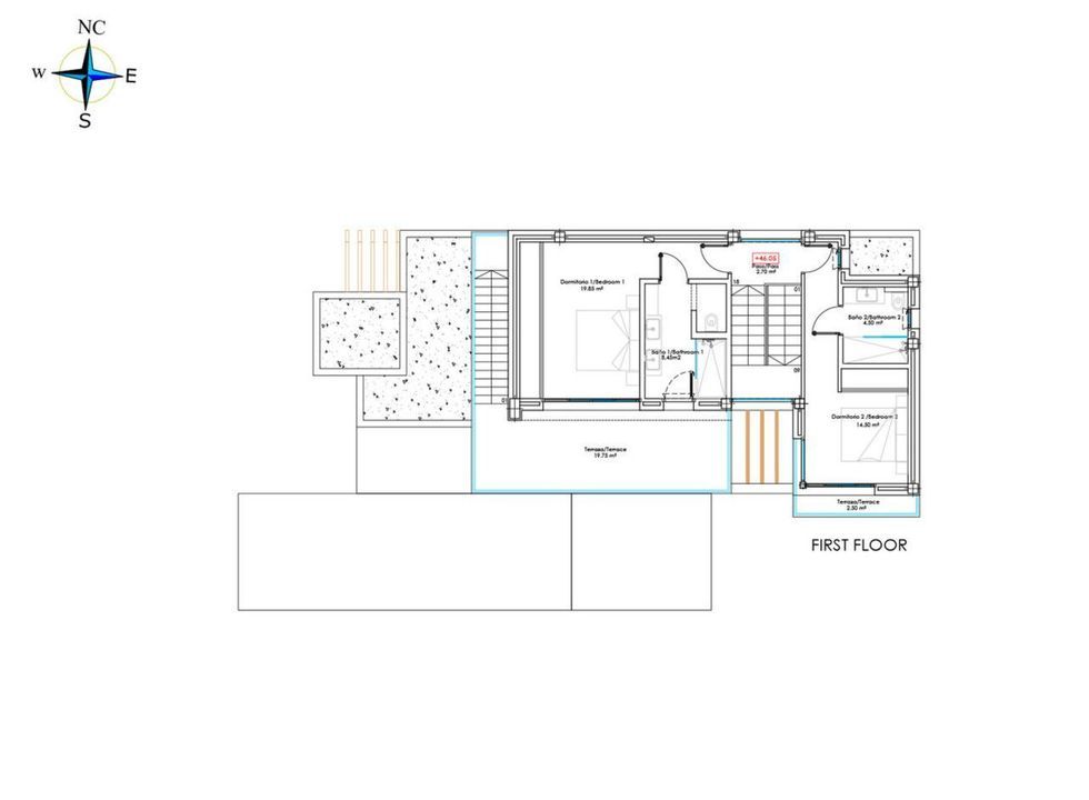 The first floor is distributed in a Master bedroom en-suite with it spacious private terrace and the second guest bedroom with its own bathroom and a balcony.