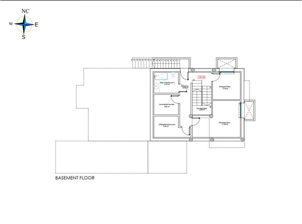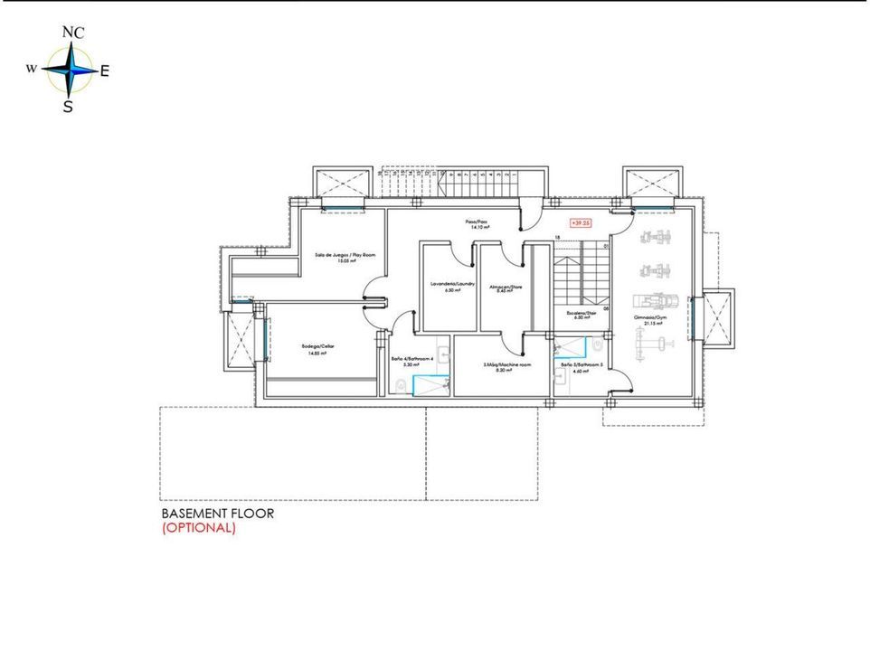 The basement level in these villas presents a third guest bedroom with a small natural light window, a gym and cinema room space, and a storage room.