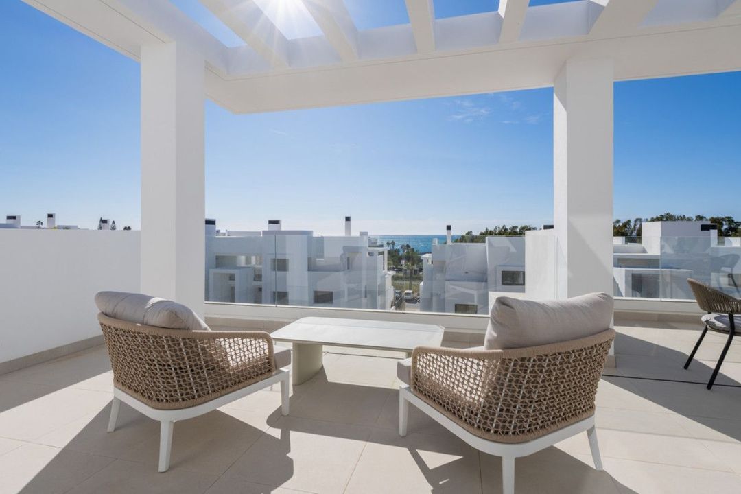 De penthouses van dit resort in Estepona nodigen je uit om authentieke mediterrane luxe te ervaren, met uitzicht op zee vanaf hun ruime terrassen, inclusief een exclusieve jacuzzi op het bovenste terras. Deze woningen, met drie slaapkamers vol natuurlijk licht, creëren een serene en exclusieve sfeer. Je zult genieten van faciliteiten die zijn ontworpen voor je welzijn, zoals een overloopzwembad, een uitgeruste fitnessruimte, een gastronomische ruimte en yoga-gebieden. Gelegen nabij idyllische stranden en gerenommeerde golfbanen, ligt dit resort ook op slechts een steenworp afstand van uitstekende restaurants en boetieks in de oude stad van Estepona, waar altijd iets nieuws te ontdekken valt. Bovendien ben je perfect verbonden met Marbella, Sotogrande en Málaga. De penthouses zijn uitgerust met hoogwaardige details, zoals gemotoriseerde zonwering voor toegang tot het terras, vloerverwarming in de hoofdbadkamer en een hoogwaardig ingerichte keuken, die comfort en exclusiviteit in elke hoek van je huis garanderen.