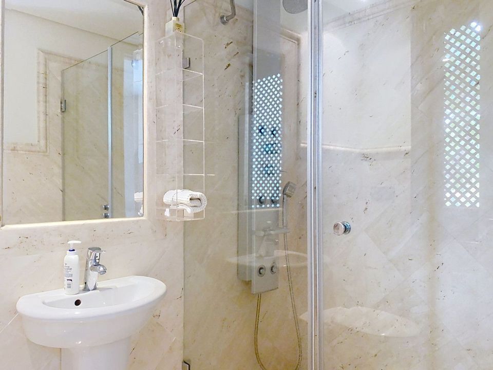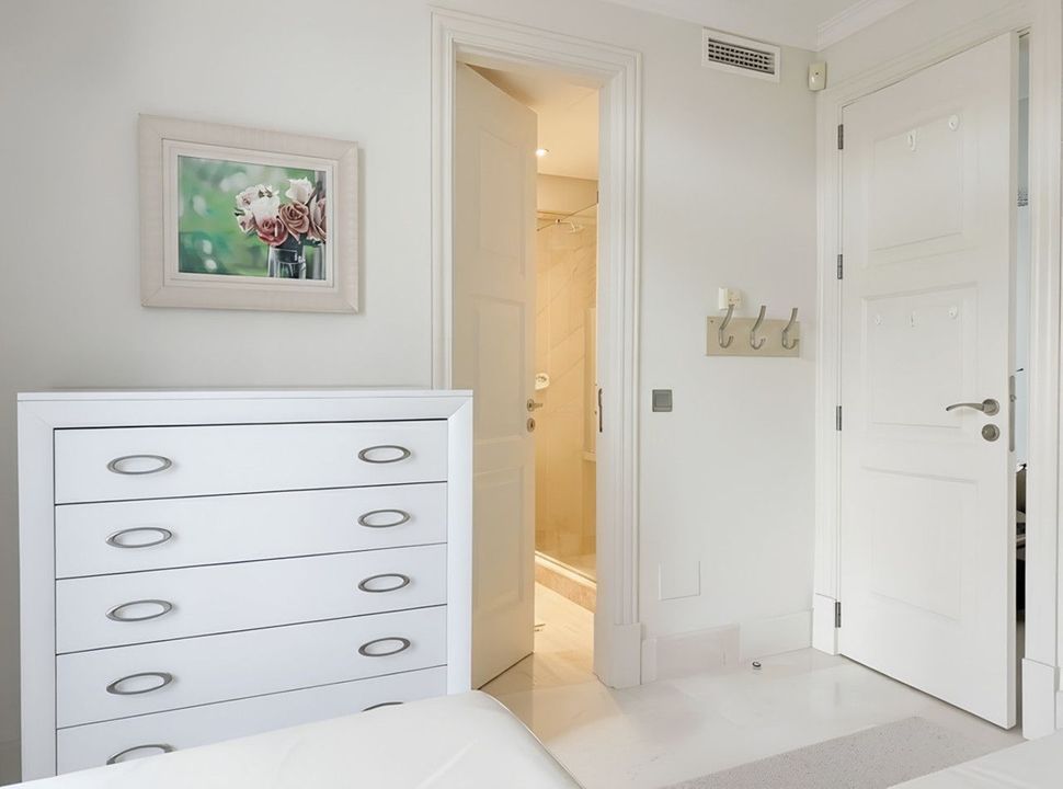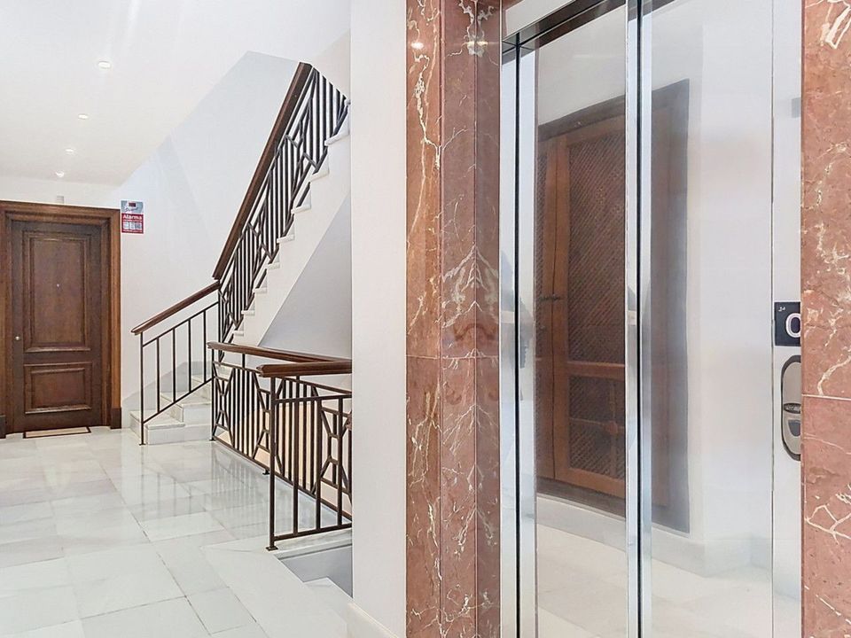 The interior stands out for its high-quality finishes and meticulous construction: acoustic insulation between units, electric shutters, REAL BIANCO cream marble floors, air conditioning, KONNEX home automation system, electric underfloor heating, and large windows that maximize natural light and views. The entire space exudes a sense of timeless elegance and well-being.