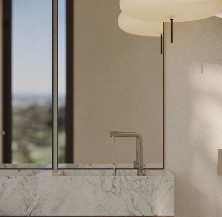 Dit hedendaagse meesterwerk combineert minimalistische architectuur met luxe comfort en creëert het perfecte Mediterrane toevluchtsoord. Met vloerlange ramen en open interieurs stroomt natuurlijk licht het ruimte in en versterkt de serene sfeer en het naadloze binnen-buiten leven.