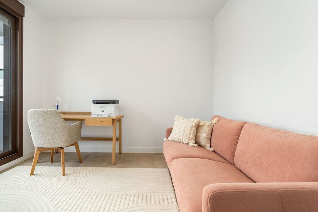 Being a corner unit, the apartment benefits from large windows on multiple sides, allowing natural light to flood the interiors throughout the day. Designed with comfort and style in mind, the apartment offers a bright open-plan living area. From the living room, large sliding doors open onto a spacious south-facing terrace, the perfect place to relax or entertain while enjoying the Mediterranean sunshine.
