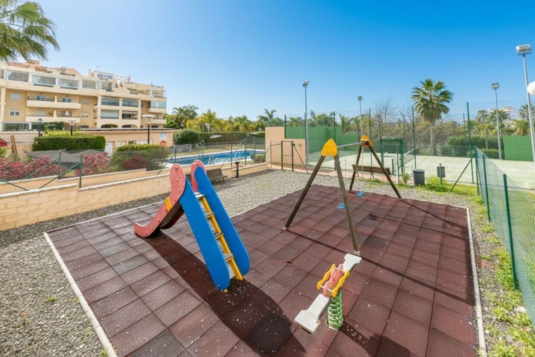 Well-maintained community with large gardens, swimming pool, children's play area and paddle tennis court.