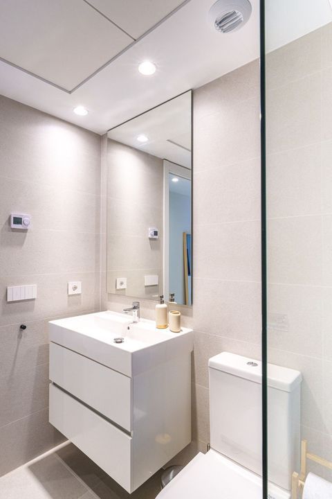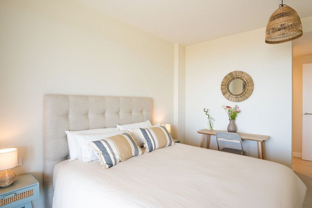 The apartment features two generously sized bedrooms, both filled with natural light and decorated in soothing neutral tones which provides direct access to a private terrace, offering the perfect spot to enjoy your morning coffee or unwind in the evening. The two bathrooms are beautifully designed with contemporary fixtures with underfloor heating
