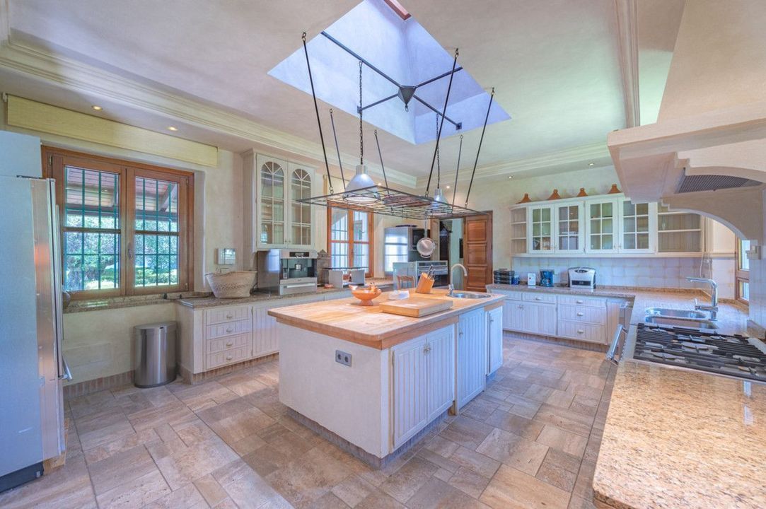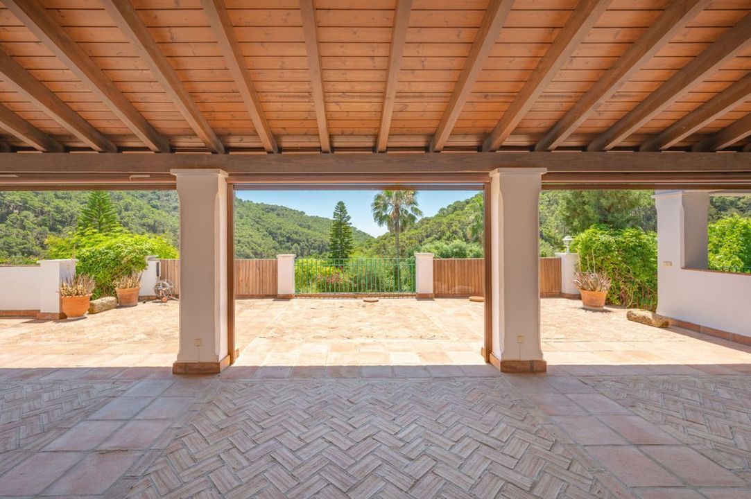Mooie villa in landelijke stijl met tien slaapkamers op het zuiden in El Velerin, Estepona, met een grote privétuin en zwembad. De woning heeft een grote inkomhal; gezellige woonkamer met open haard en hoge plafonds; eetkamer; volledig ingerichte keuken met eiland; de mastersuite; en negen gastensuites. Er is ook een spa met jacuzzi en een fitnessruimte. Andere kenmerken zijn parkeergelegenheid voor zes auto's, warme en koude airconditioning en centrale verwarming.