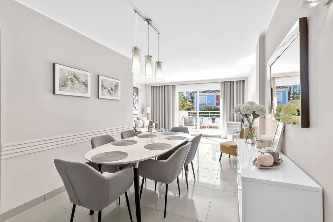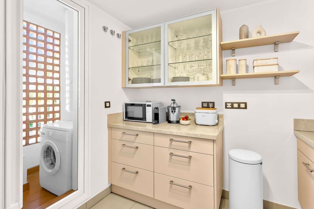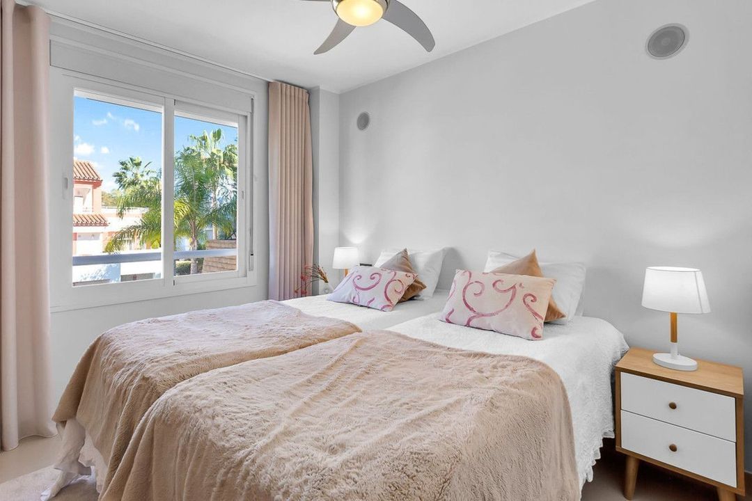 The community features amenities like a lagoon-style swimming pool, poolside bar-restaurant (open from April to October), landscaped subtropical gardens, 24/7 security and concierge service. The location is perfect for holidays and living alike, with all amenities at walking distance including sporting facilities, restaurants, shops, pharmacy, bakery, beauty centres etc. Also there is a great El Campanario country club just 400m from home with facilities like restaurant, golf, tennis, heated pool & gym. This elegant penthouse is a perfect choice, blending home and rental investment. Viewings by appointment.