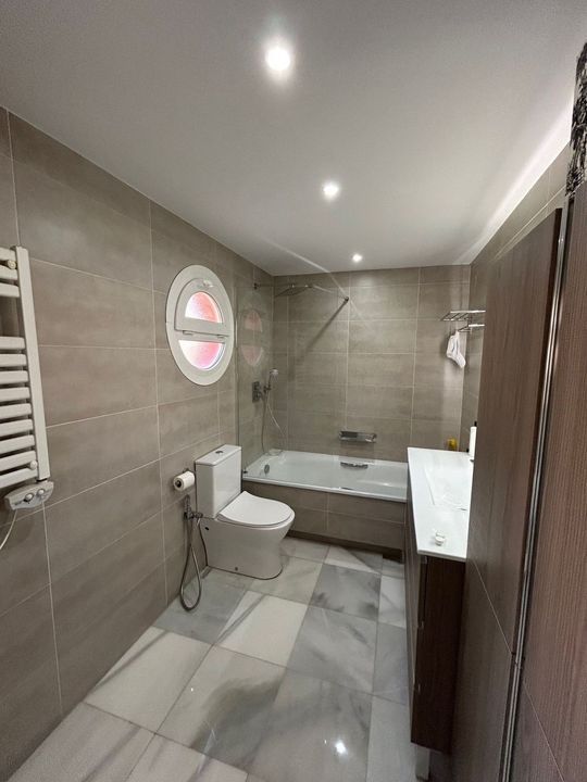 Distributed over three levels, the property offers 203.78 m² built. The main floor features a bright living room with direct access to the porch and garden, which can be enclosed with glass curtains, a recently extended and renovated kitchen with high-end appliances, and a guest toilet with storage space.