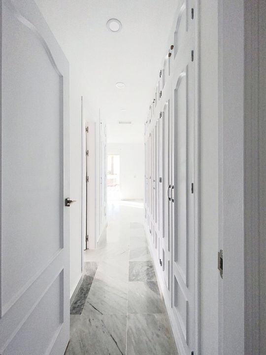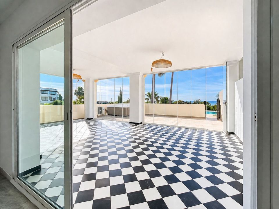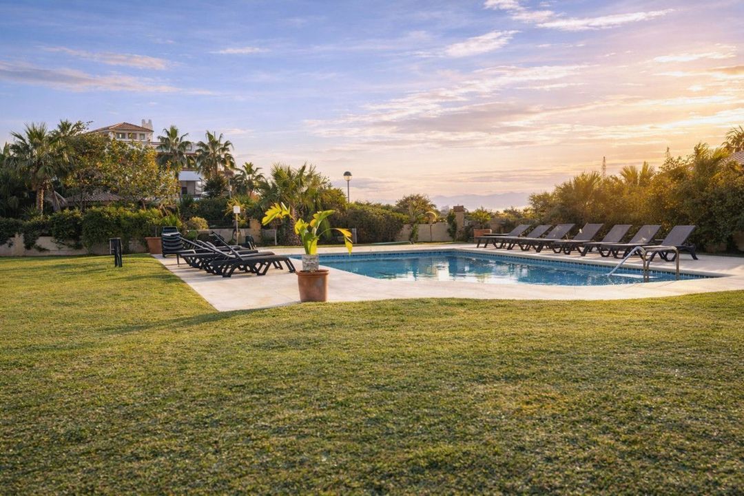 Situated in Estepona East, one of the most desirable residential areas on the Costa del Sol, the property is just a five-minute walk to the beach, beach bars and restaurants. It is adjacent to La Resina Golf & Country Club and close to Selwo Aventura, making it particularly attractive for golf property buyers in Estepona. Hospiten Hospital is less than 1 km away. Estepona centre is 5–8 minutes by car, Puerto Banús and Marbella are 15–20 minutes away, and Málaga International Airport can be reached in approximately 45 minutes via the AP-7.