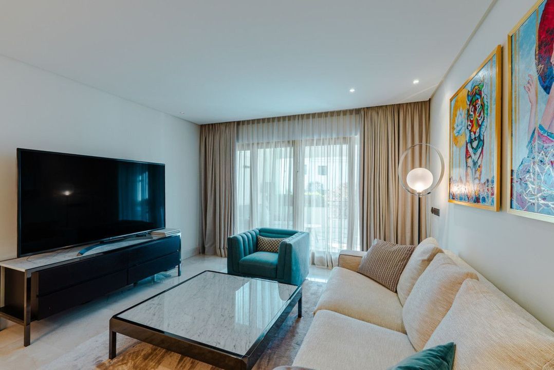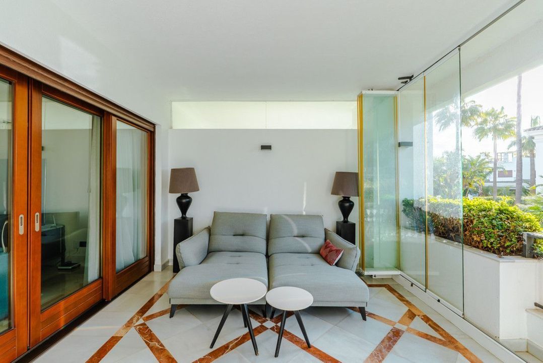 Located within the prestigious gated beachfront development of Doncella Beach in the prime residential area of Seghers, Estepona, this elegant ground floor apartment offers refined Mediterranean living in one of the most exclusive frontline communities on the Costa del Sol.