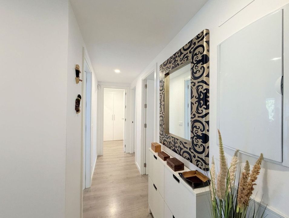 De woning verkeert in uitstekende staat en is afgewerkt met renovaties en materialen van hoge kwaliteit. De woonkamer, eetkamer en volledig uitgeruste keuken vormen samen een open en functionele leefruimte, met op maat gemaakte kasten die de opbergruimte optimaal benutten. Vanuit deze ruimte is er directe toegang tot een ruim overdekt terras, ideaal om het hele jaar door van te genieten. Tot de extra voorzieningen behoren elektrische rolluiken met een veiligheidssysteem en vergrendeling.
