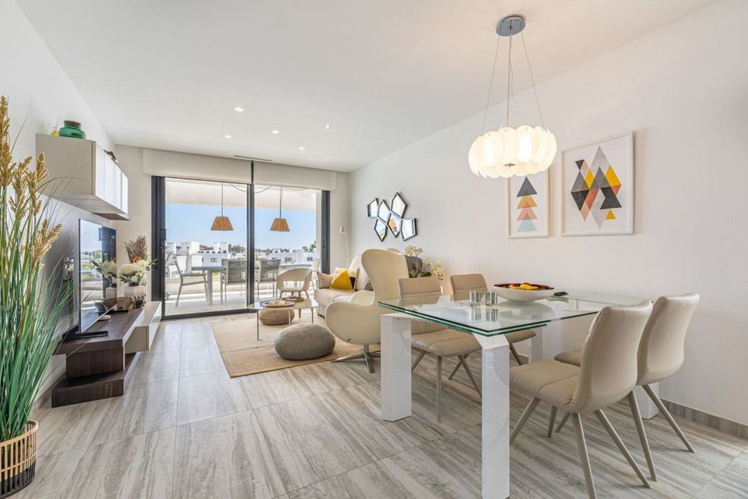 The apartment features two spacious bedrooms and two bathrooms. The modern kitchen is fully equipped with high-quality appliances and also includes a practical utility room. The living room is bright and airy, with large windows and sliding doors that open onto a generous balcony – ideal for relaxing or entertaining.
