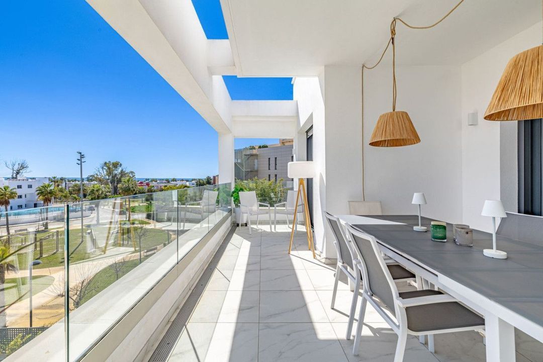This modern and stylish apartment in Cancelada, perfectly located between Marbella and Estepona, offers a fantastic rooftop terrace and prime location! Built in 2020, the property includes two garage spaces and a storage room. Restaurants, shops, supermarkets, and the beach are all within walking distance.