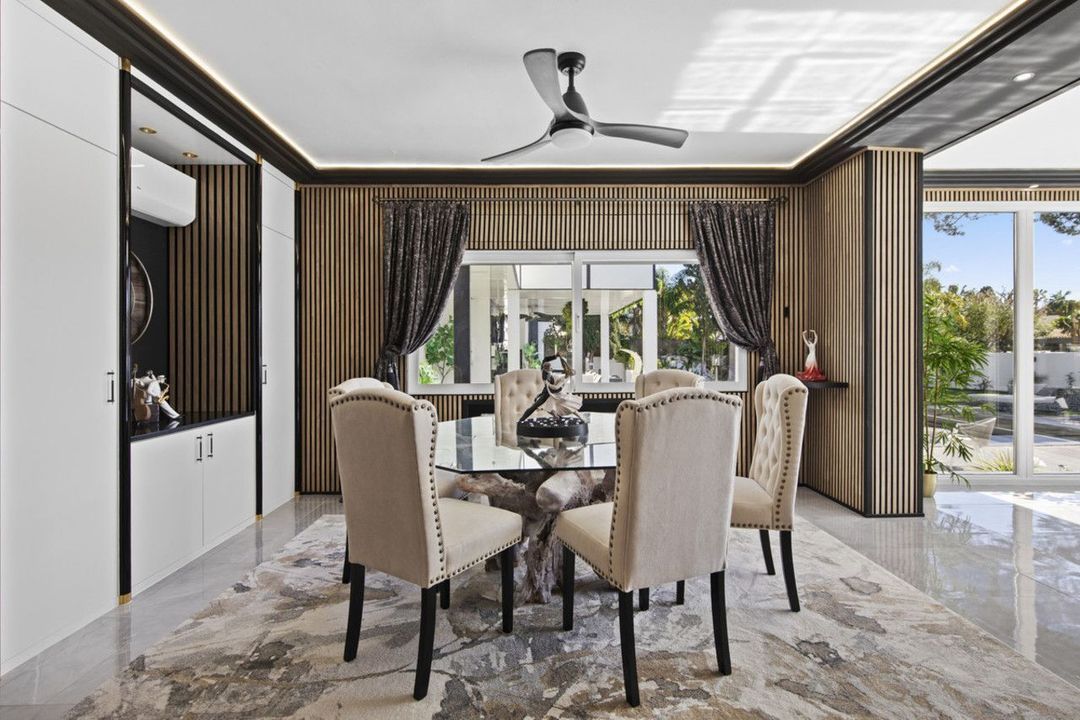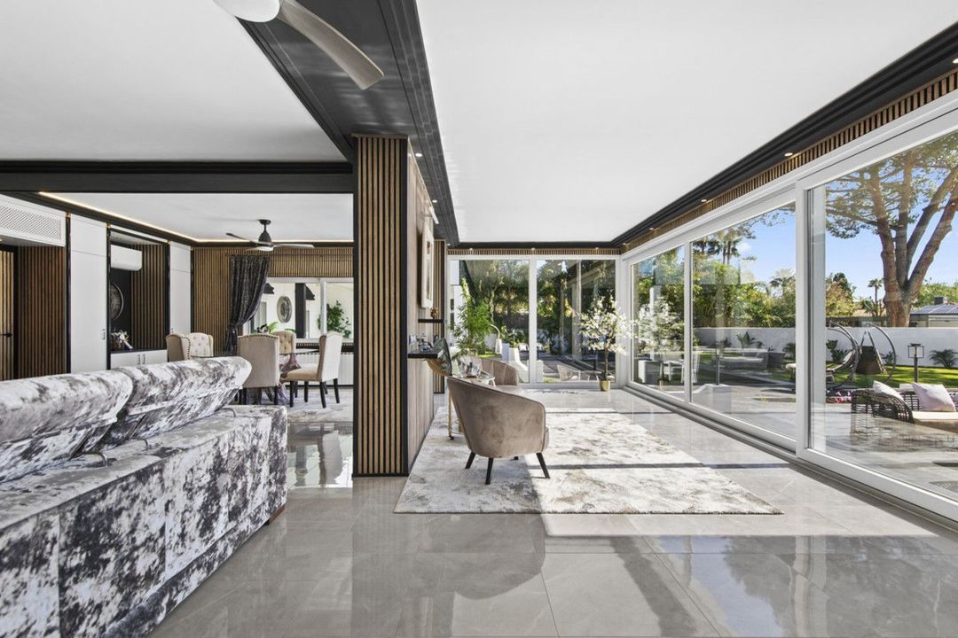 The outdoor areas are truly special. The mature Zen-inspired garden creates a tranquil and private sanctuary, complete with an outdoor bar, BBQ area, and multiple chill-out zones designed for entertaining and relaxation. A games room adds further versatility for family enjoyment.