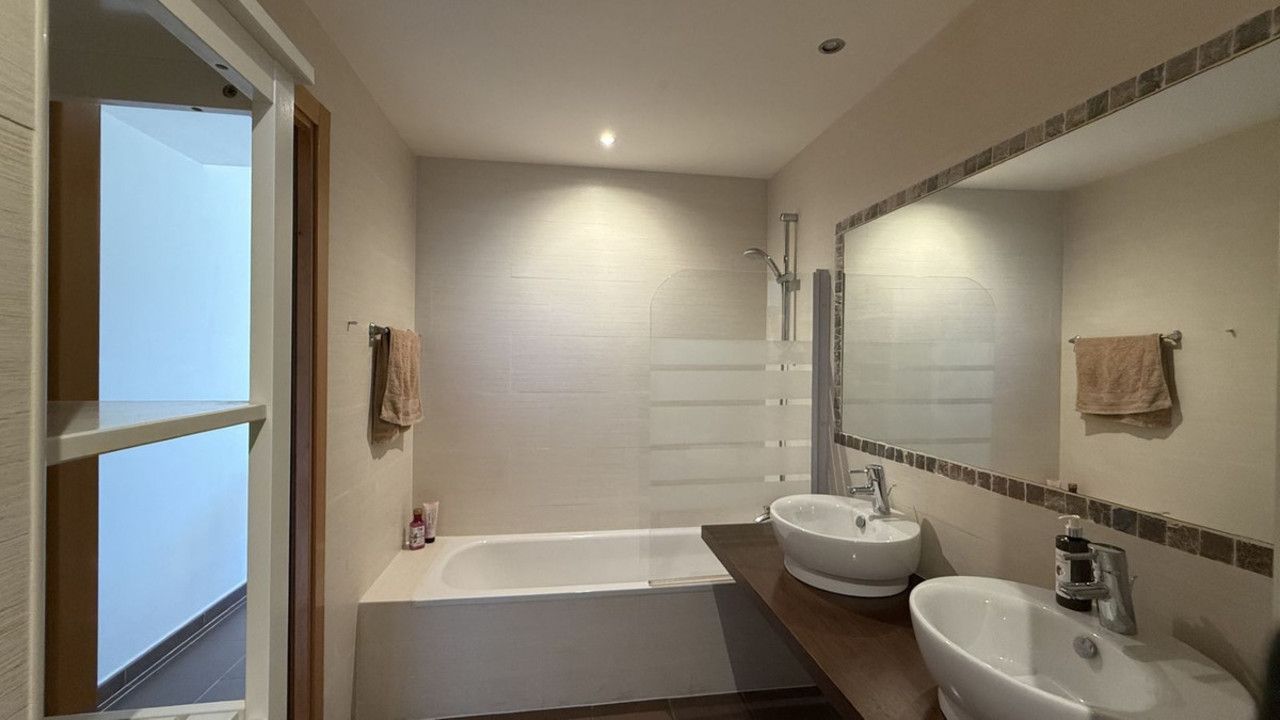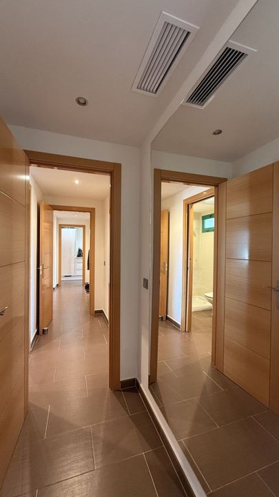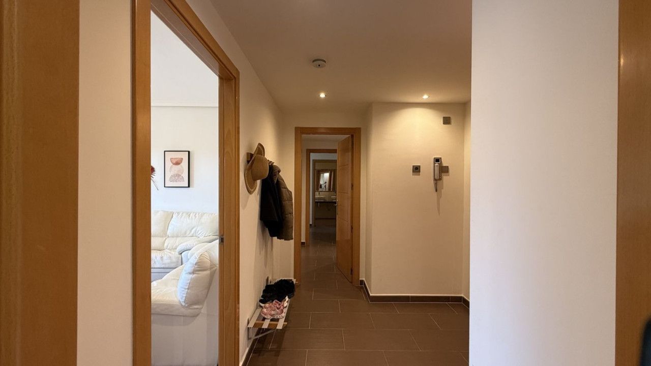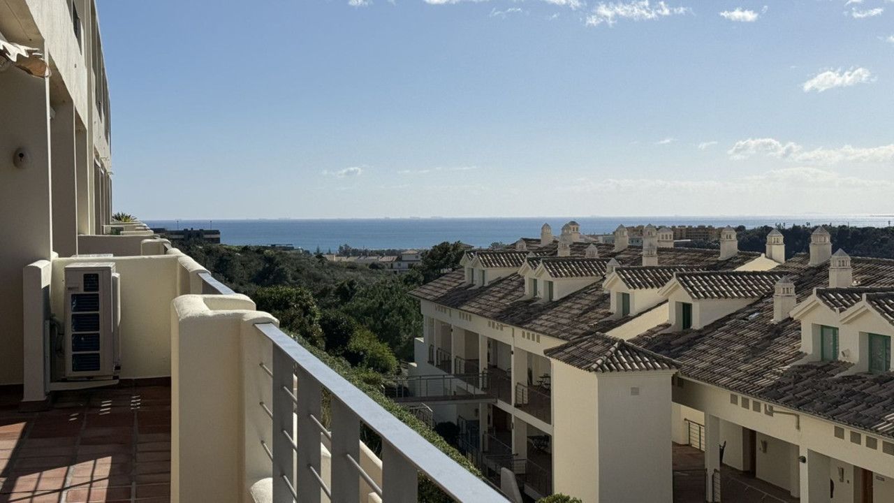 You have beautiful panoramic views of the forest and mountains, as well as some sea views, from this bright and spacious middle-floor apartment, located in a quiet and well-kept community in popular Monte Selwo, east of Estepona. The kitchen is fully equipped with high-end appliances from Neff. The apartment offers 98 m² of living area and a large 60 m² very private southwest-facing terrace where you can enjoy the beautiful landscape in front of you and from where you fantastic sunsets, perfect for relaxing and taking in the beautiful views. The terrace is partly covered and partly open. Inside, you will find a good-sized living room and two bedrooms, with the master bedroom featuring an en-suite bathroom, as well as a total of two bathrooms and a fully equipped independent kitchen. All rooms, including the kitchen, have direct access to the huge terrace. There is a built-in AC system for both cooling and heating. The property also includes a generous underground parking space and an approximately 6 m² storage room. Short-term rentals are not allowed, which keeps the community peaceful and residential. The community fee is very attractive at just €120 per month. The area is especially popular with Nordic residents and offers easy access to shops, services, and main roads. A great option as a permanent home, holiday property, or long-term investment. Located east of Estepona, it is approximately 14 km to Puerto Banús and 12 km to Estepona town.