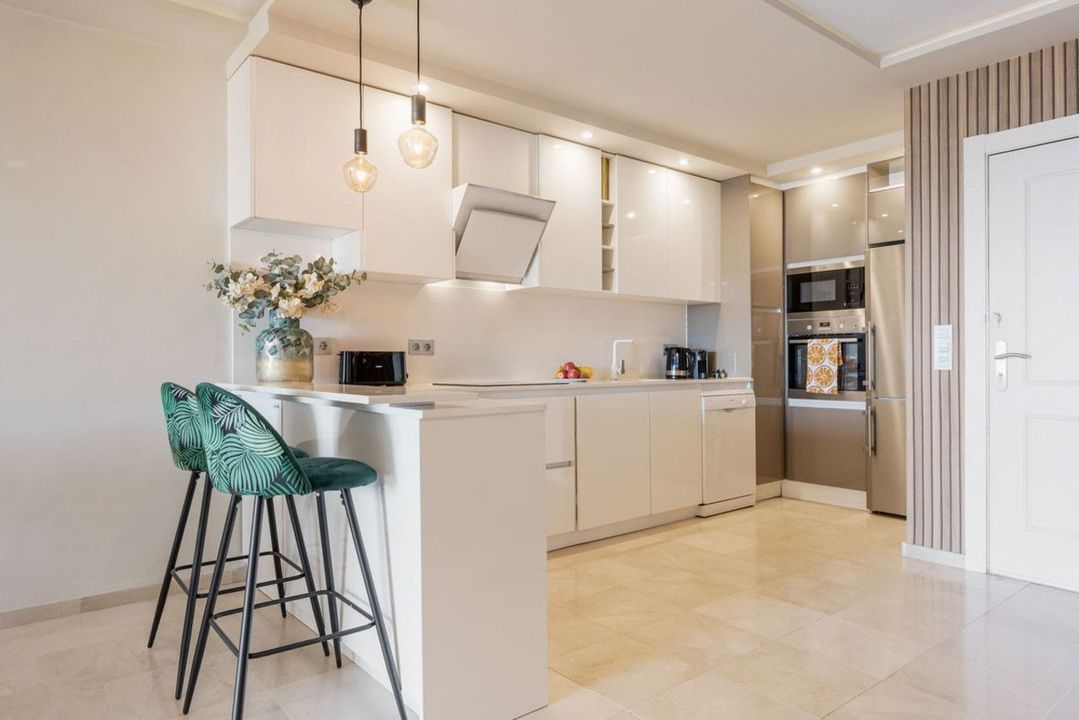 De volledig uitgeruste keuken biedt alle gemakken, terwijl de airconditioning zorgt voor een aangenaam binnenklimaat, het hele jaar door. Daarnaast beschikt het appartement over een ondergrondse privéparkeerplaats en heeft u toegang tot een verfrissend gemeenschappelijk zwembad, perfect om te ontspannen onder de Spaanse zon.