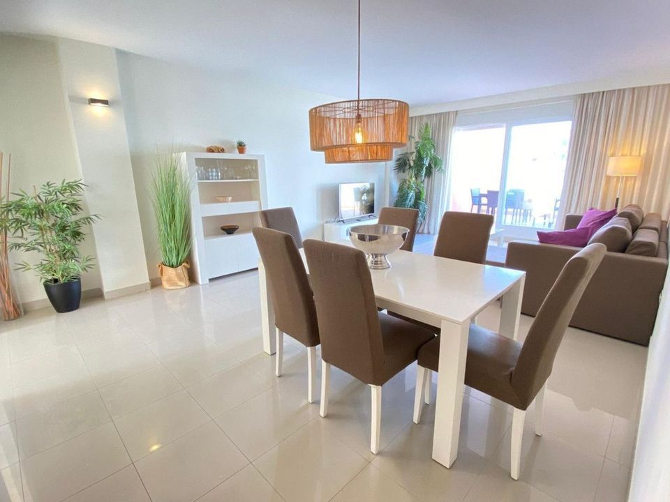 Spacious living – dining area with direct access to the terrace with open and direct views over the main pool and communal gardens.