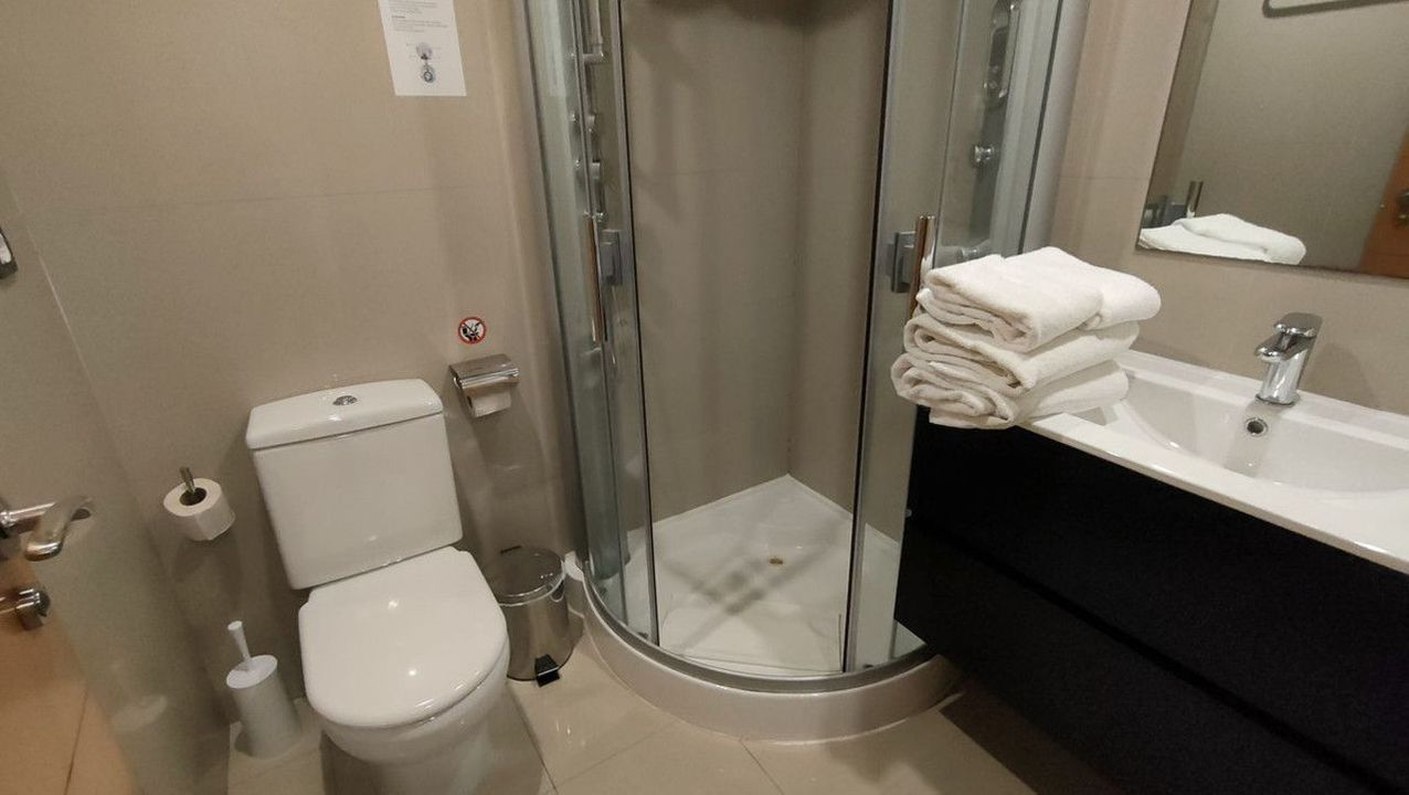 The apartment also offers a fully furnished and well-equipped kitchen, complemented by a separate laundry area for added convenience.