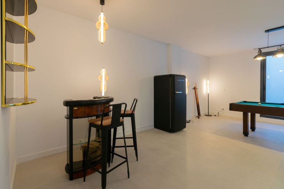 Op de bovenverdieping bevinden zich de slaapkamers, die goed geschikt zijn voor gezinsgebruik of langere verblijven, terwijl het lagere niveau extra flexibiliteit biedt. Deze ruimte is momenteel ingericht als multifunctionele ontspanningsruimte, maar kan eenvoudig worden aangepast als speelkamer, fitnessruimte, thuisbioscoop, kantoor, gastenruimte of extra familieruimte.