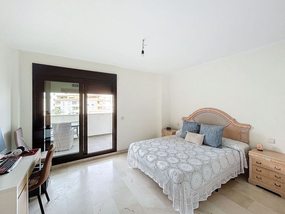 The apartment includes three spacious bedrooms, with the master suite featuring an en-suite bathroom and direct access to a private terrace with sea views. Additionally, there is a large garage space and storage room, both included in the price. The furniture is optional, offering flexibility for the buyer.