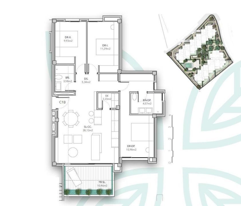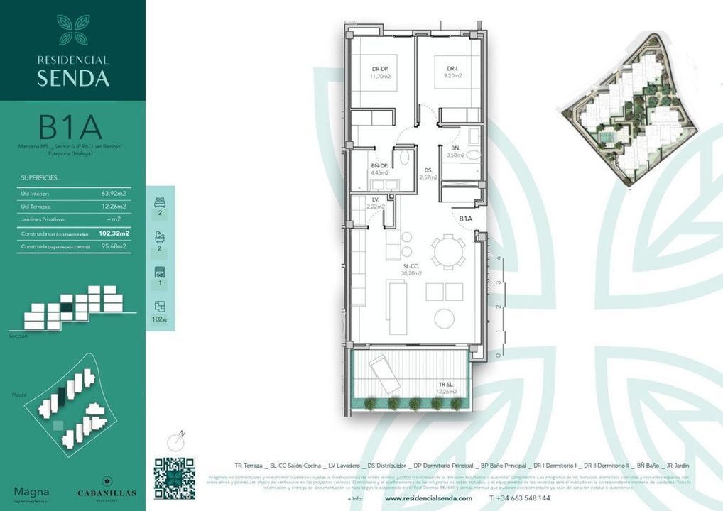 Constructed area of 102.32 m2 and large terrace of 12.26 m2.