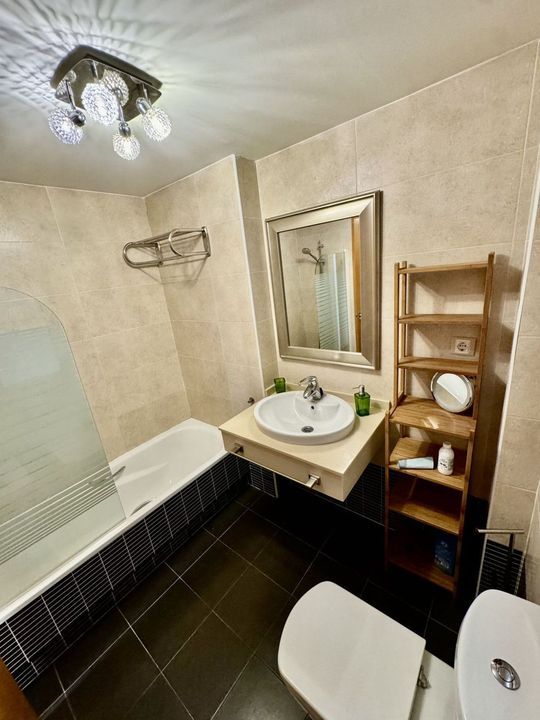 Inside, the apartment offers a comfortable and well-designed layout. It features two bedrooms, including an elegant principal bedroom with an en-suite bathroom and private balcony, an intimate space ideal for starting the day with natural light. The second bedroom is served by a modern and practical fully fitted bathroom with a shower.