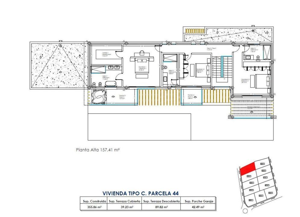 The outdoor spaces have been designed to offer a more intimate and private atmosphere, without compromising on comfort. The villa features 92.24 m² of open terraces and 38.50 m² of covered terraces, creating a variety of areas for relaxation, dining, and enjoying the climate throughout the year. The 47.25 m² swimming pool sits as a natural focal point, surrounded by landscaped areas that invite both quiet moments and social gatherings.