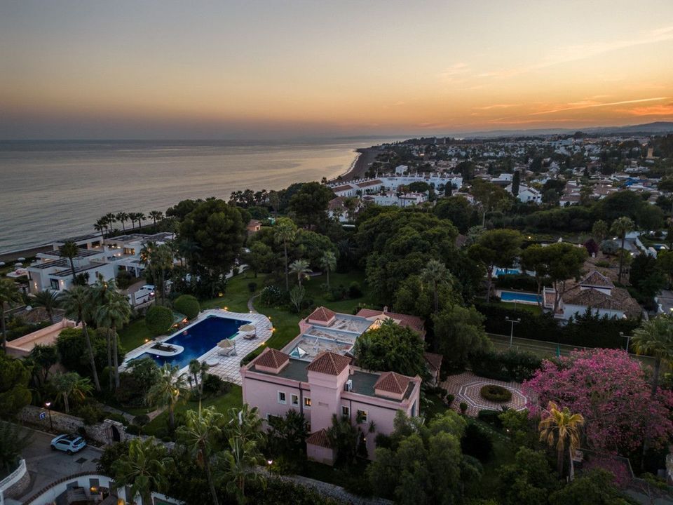 Met een perfecte oriëntatie op het zuiden geniet je van het uitzonderlijke klimaat aan de Costa del Sol. Het hoofdgebouw heeft twee verdiepingen met een totale woonoppervlakte van 748 m², met een stijlvolle keuken, bioscoopzaal, sauna, fitnessruimte en meer. Het gastenverblijf, met 2 verdiepingen en 158 m², biedt extra slaapkamers en ruime terrassen. De conciërgewoning, met 164 m², biedt een comfortabele leefruimte.