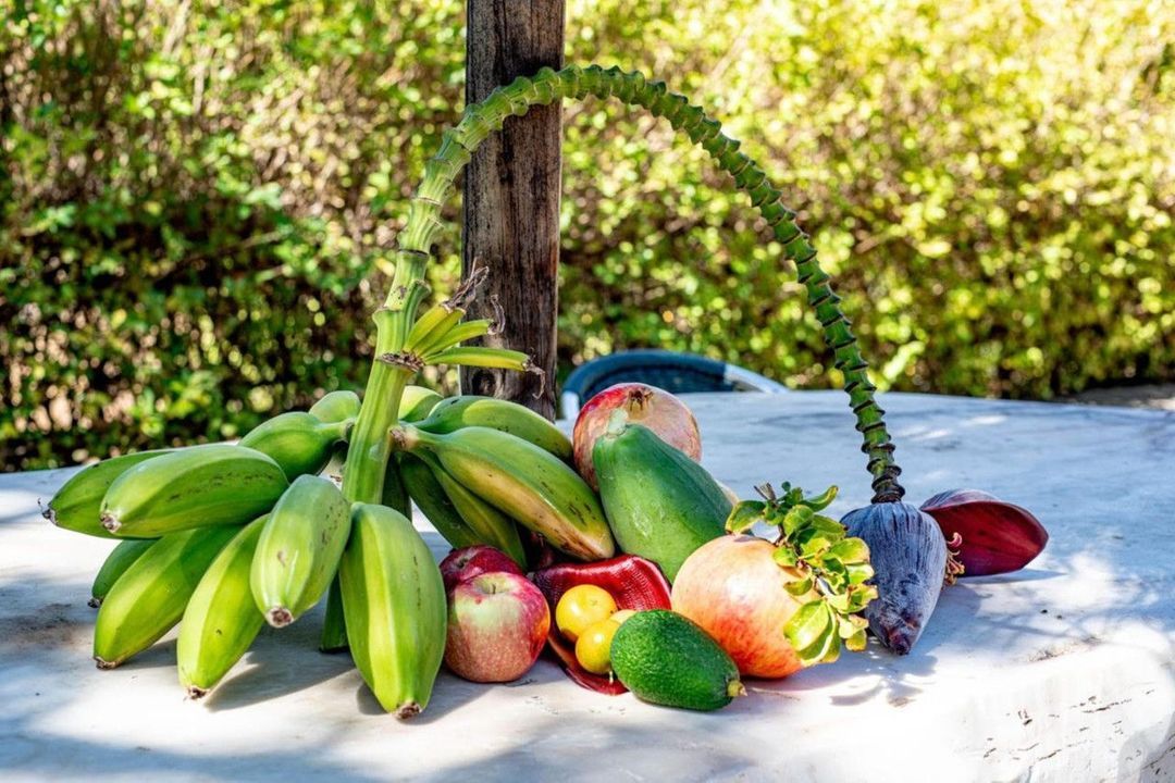The ancient holes & greens have been turned into a unique tropical food forest through regenerative agriculture where over 120 different species of fruit and vegetables