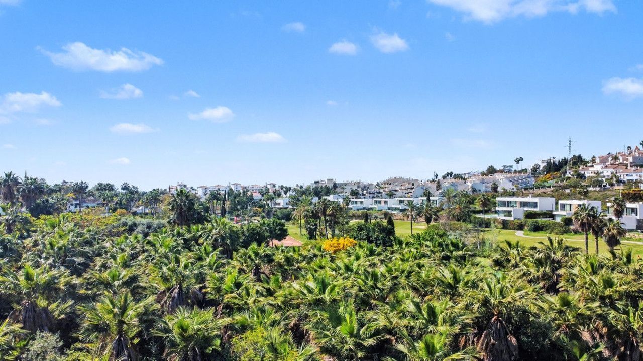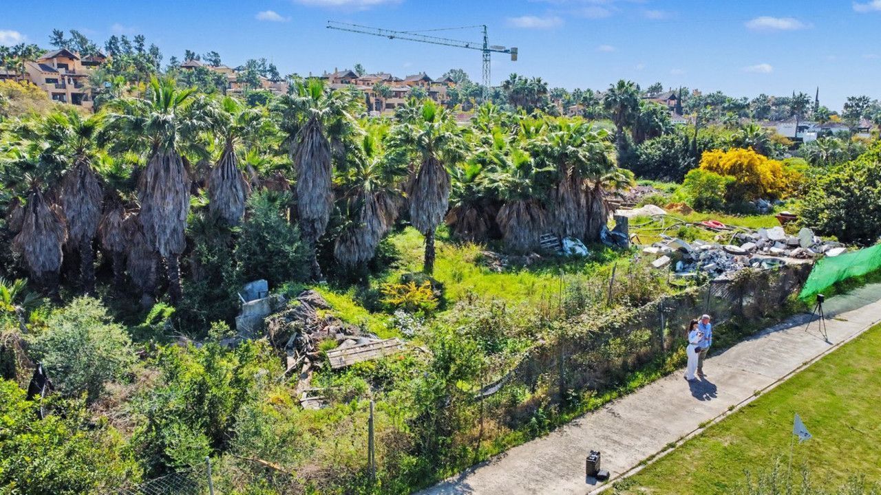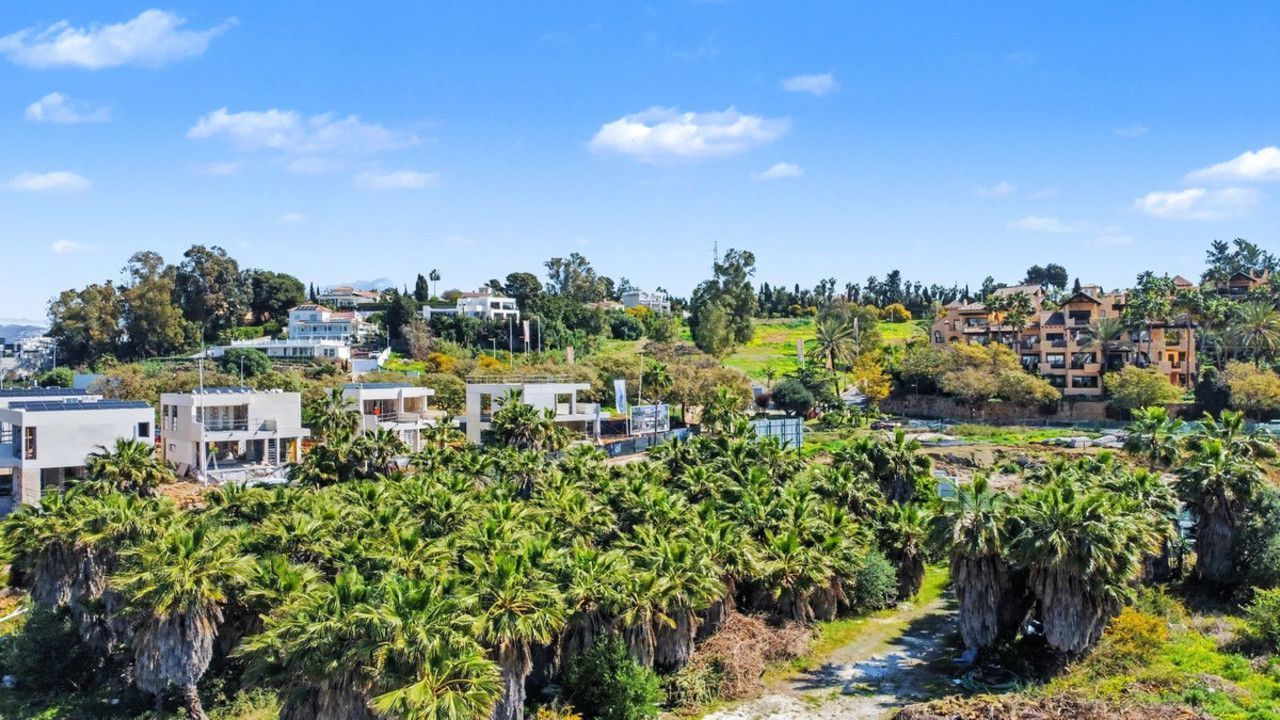 From the site, the panoramic views take in an exceptional landscape: to the north, the imposing silhouette of the Serranía de Ronda mountains; to the south, glimpses of the Mediterranean shimmering between the rooftops; and in the foreground, the perfect green carpet of the golf course flanked by luxury villas and ancient trees. The club's sporting facilities — clay tennis courts, golf course and landscaped gardens — are clearly visible from the plot, reinforcing the exclusive country club character of this setting.