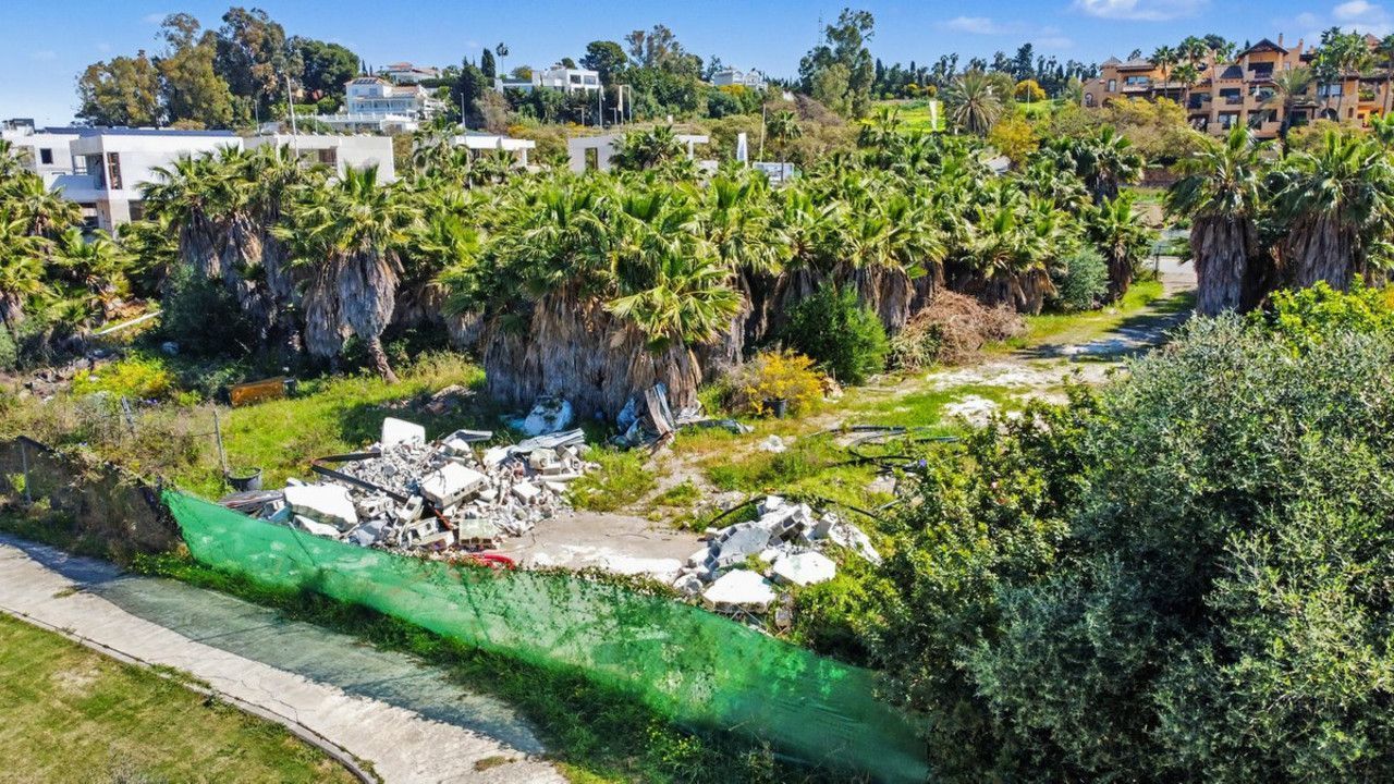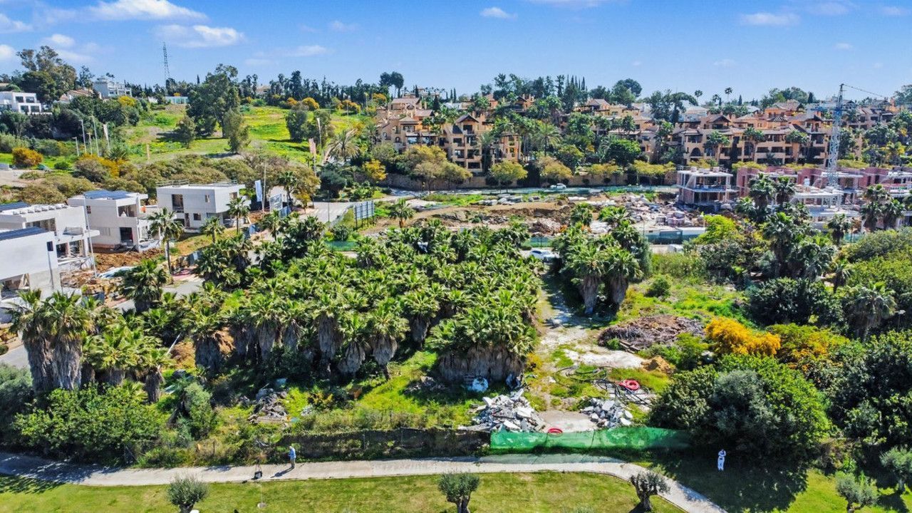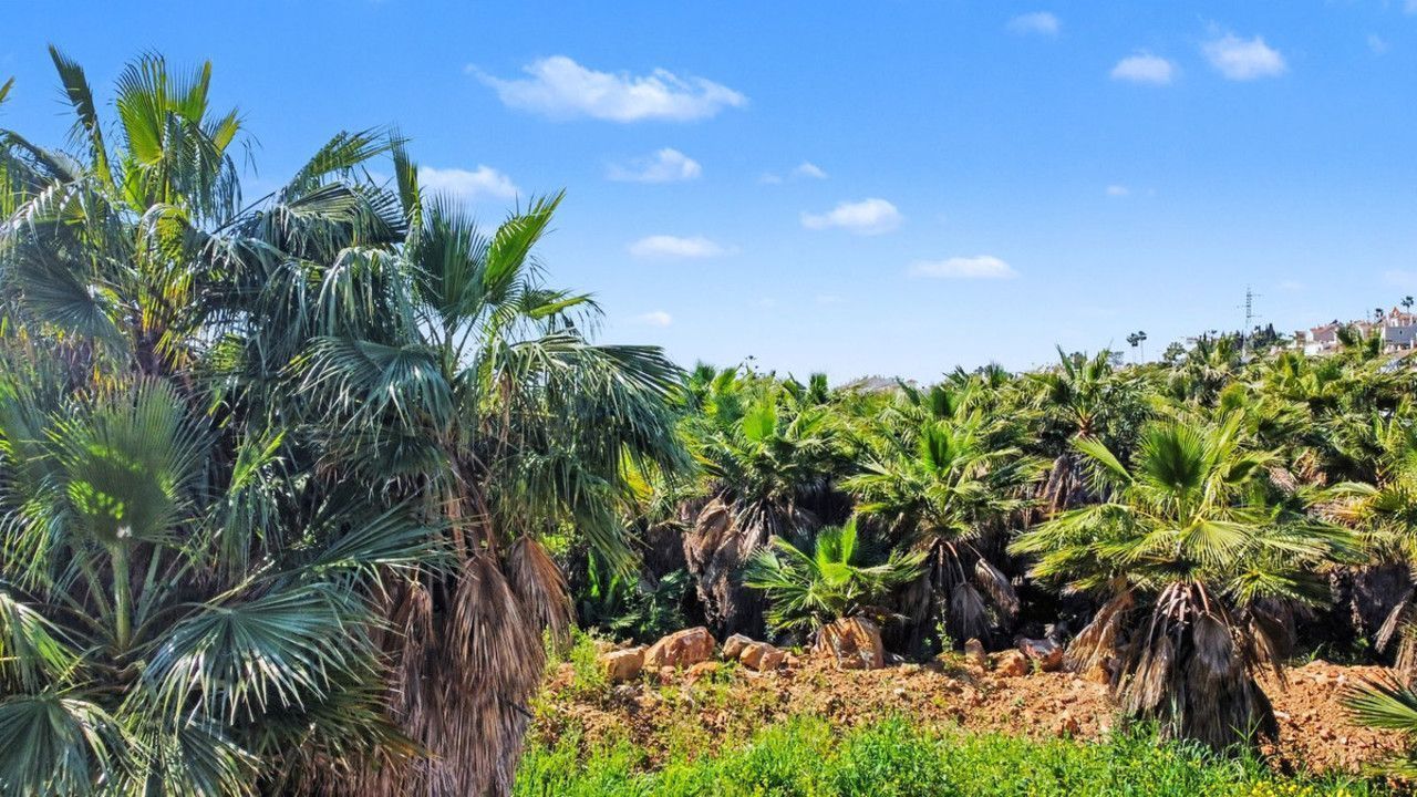 The plot is home to a dense and lush Mediterranean and subtropical landscape, with mature Washingtonia palms of impressive stature that lend the site a singular botanical character. This existing vegetation could be strategically integrated into any high-end landscaping and architectural project.