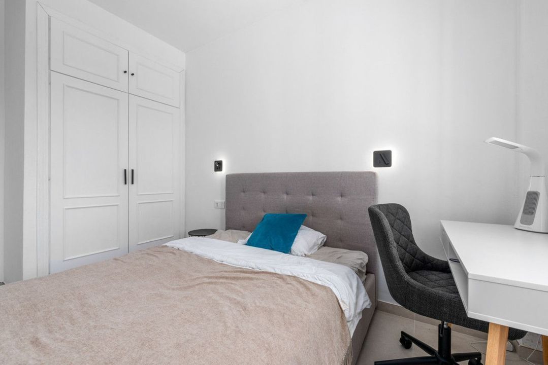 The top floor hosts a further large bedroom with fitted wardrobes, an en-suite bathroom, and access to two private terraces, perfectly positioned to enjoy both morning and afternoon sun.