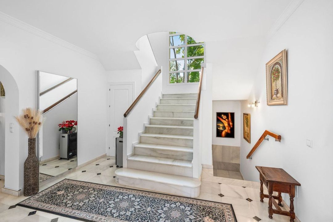 Deze elegante villa in Andalusische stijl baadt de hele dag in natuurlijk licht en biedt een verfijnde maar ontspannen levensstijl, waar privacy en sereniteit samengaan met moeiteloze toegang tot de kust. Zowel Playa del Cristo als de levendige jachthaven van Estepona liggen op comfortabele loopafstand.