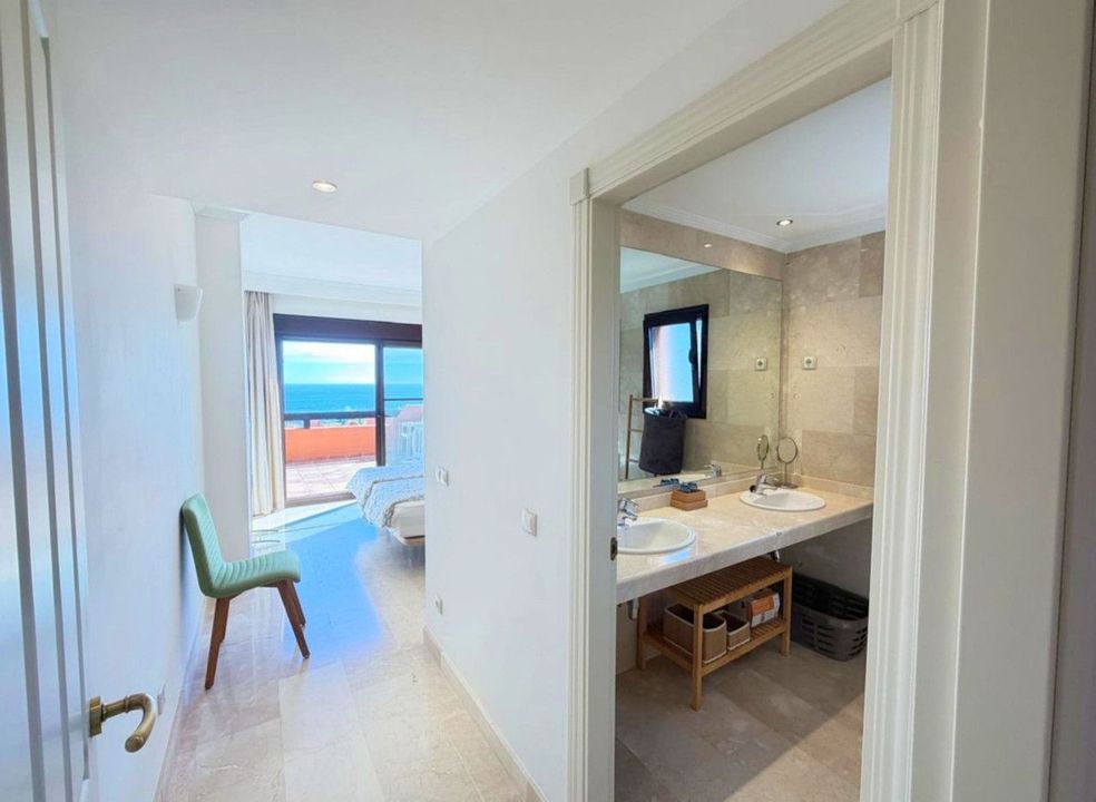 Spectaculair penthouse met een ruim terras en groot solarium, gelegen op slechts 200 m van het strand. Georiënteerd van zuidoost naar zuidwest geniet deze lichte woning de hele dag door van overvloedig natuurlijk licht dankzij de grote ramen. De verhoogde ligging biedt adembenemend panoramisch uitzicht op de zee, de kust en zelfs Afrika. Gebouwd met hoogwaardige materialen, beschikt het over sanitair van het gerenommeerde merk Grohe, Siemens-apparatuur en elegante marmeren vloeren en badkamers. Gelegen in een goed onderhouden, besloten gemeenschap met slechts 40 woningen en lage servicekosten, omgeven door verzorgde tropische tuinen met palmbomen, biedt het een spectaculaire infinitypool, ruime speelzones en parasols en ligstoelen voor het plezier van de bewoners. Slechts 5 minuten rijden van het charmante stadje Estepona en de levendige Puerto de la Duquesa, waar u een breed scala aan voorzieningen, winkels en vrijetijdsmogelijkheden vindt. Het pand is inclusief een parkeerplaats en een berging. Een van de beste locaties aan de Costa! Een absolute aanrader om te bezoeken!