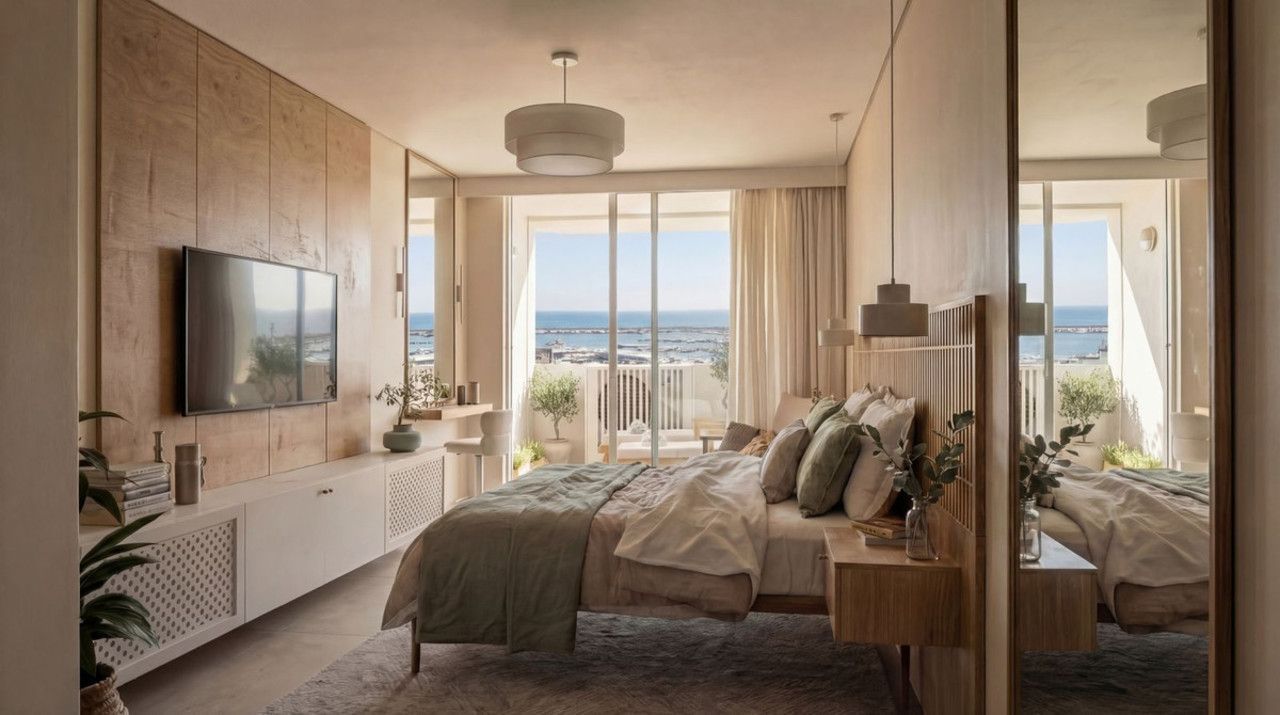 With a total area of 131 m² (110 m² interior), the apartment stands out for its spacious layout, natural light, and seamless connection to the surrounding coastal environment.