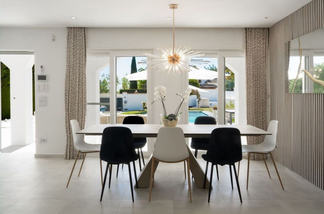 Set on a sunny south-facing plot, the home immediately impresses with its bright, open layout and seamless connection to the garden and pool. The heart of the villa is a spacious open-plan kitchen, dining, and living area—perfect for entertaining or relaxed everyday living—flowing directly onto a covered wraparound terrace for all-day outdoor enjoyment.