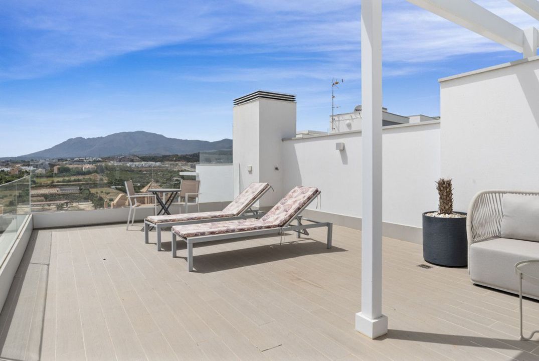 One of the highlights of this home is the private rooftop solarium, an ideal spot for sunbathing, entertaining guests, or simply taking in the panoramic views stretching all the way to Gibraltar. Additional features include air conditioning, fiber optic internet, lift access, underground parking, a storage room, and a security system, all with low community fees.